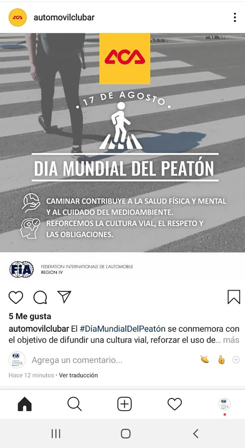 En ese contexto, el 17 de agosto, día del peatón, los Clubes tuvieron a disposición una gráfica para publicar en la que se destacó y reflejó la importancia de caminar para mantener una vida saludable, la necesidad de reforzar el uso de espacios peatonales y promover el respeto y la responsabilidad en las calles.