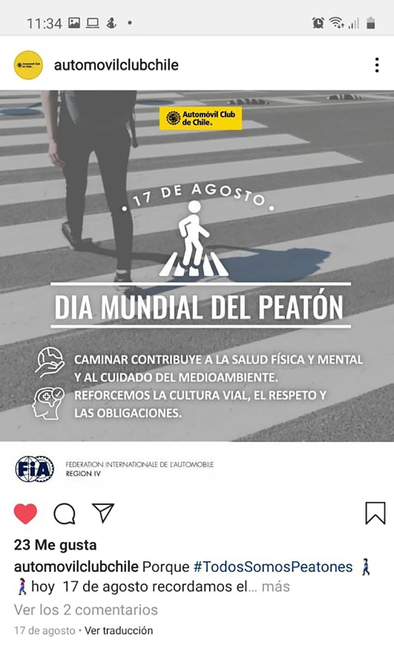 Además, se organizó un encuentro virtual en Instagram Live en el cual Leandro Perillo, Gerente de Movilidad y Políticas Públicas de FIA Región IV, dialogó con Pablo La Spina, Gerente de Educación y Convivencia Vial del Gobierno de la Ciudad Autónoma de Buenos Aires. El funcionario afirmó que buscan sensibilizar a la gente para que comprenda que las muertes en siniestros viales son prevenibles; y señaló que el 33 % de los fallecidos en las calles de la ciudad en 2019, fueron peatones y el 50 %, motociclistas. Las muertes, sin embargo, se redujeron un 30 % si se compara con lo que sucedió en el período 2015-2018. Pero “apuntamos a cero víctimas porque todo esto es evitable”, reiteró. La problemática es una tendencia mundial; por eso la concientización también debe ser global.