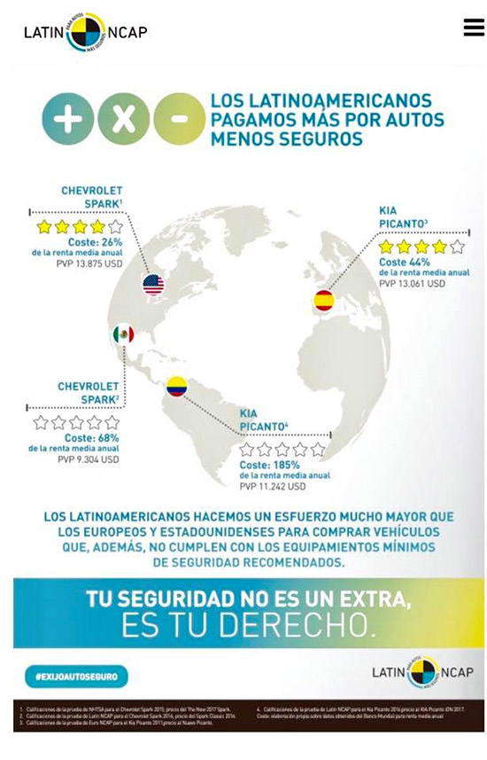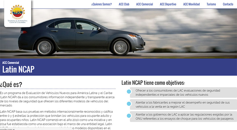 El Automóvil Club de Colombia (ACC) en su rol de miembro fundador de LatinNCAP, desarrolla diferentes acciones destinadas a concientizar a la comunidad sobre los beneficios de conocer con anticipación las calificaciones de vehículos comercializados en el mercado colombiano, a través de las pruebas de impacto realizadas por LatinNCAP.