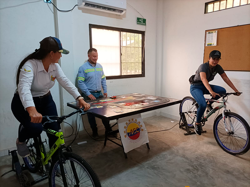 Por un lado, se dispuso de una pista de vehículos en la cual los participantes, al pedalear en una bicicleta, generan energía cinética que logra impulsar a sus automóviles. En este caso, la intención es que los conductores identifiquen el peligro que puede causar el exceso de velocidad y transitar curvas demasiado confiados.