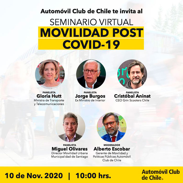 La pandemia por coronavirus provocó que las ciudades ya no sean lo que eran. Para identificar el impacto y las transformaciones que conllevó, así como para reconocer las oportunidades que se presentan, el Automóvil Club de Chile organizó un seminario virtual.