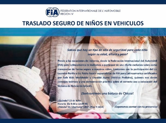 Desde FIA Region IV continuamos innovando junto al Automóvil Club Argentino para generar conciencia y promover la seguridad vial en todos los sectores. Por eso, el pasado 13 de Julio realizamos un encuentro sobre “Traslado seguro de niños en vehículos” con la participación de bloggeras mamás que marcan tendencia en las redes sociales. Junto a los Licenciados Leandro Perillo y Pablo Azorin, especialistas de FIA Region IV y técnicos certificados por Safe Kids Worldwide junto a al reconocido médico pediatra Dr. Osvaldo Aymo, compartimos consejos teóricos y una demostración práctica sobre el correcto uso y colocación del Sistema de Retención Infantil. Repercusiones del evento en #Instagram @fiaregion4.