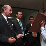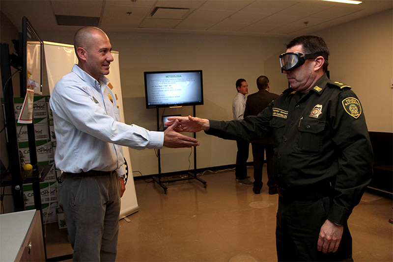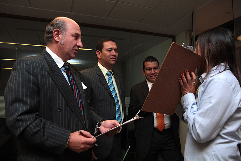 El gerente de Automóvil Club de Colombia y los señores Ricardo Galindo Director de la Agencia Nacional de Seguridad Val y Juan José Silva Asistente.