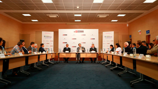 En la mesa representan al Touring y Automóvil Club del Perú (TACP) su Presidente Sr. Iván Dibos, su Director y Presidente de la Comisión de Educación y Seguridad Vial, Sr. Guillermo Van Oordt y su Gerente General Dra. Gabriela Goñi.