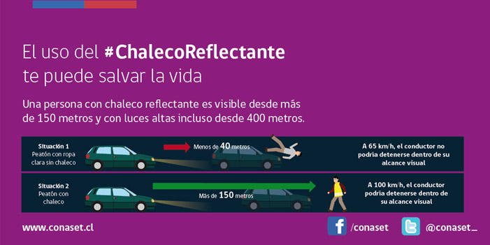 Para el Gerente de asuntos públicos de Automóvil Club de Chile, Alberto Escobar, esta “es una medida económica, simple y muy efectiva para prevenir los atropellos que puedan producirse en zonas de alta velocidad, como lo son las autopistas y carreteras. Al tener una gran cantidad de chilenos que desconocen los lugares para detenerse y cómo se debe actuar en caso de una emergencia vial, el chaleco retro-reflectante los hará visible al resto de los conductores desde una distancia superior a los 150 metros y reducirá los riesgos que pueden darse en aquellas rutas poco iluminadas”