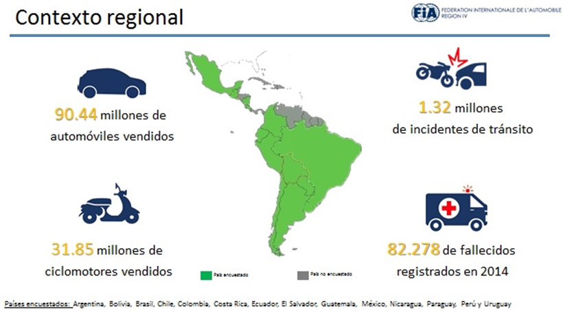 Dicho informe se realizó con datos de 14 países durante Octubre de 2015 y contó con la colaboración de los Automóviles Clubes de Argentina (ACA), Bolivia (ACB) , Brasil (ACBr), Chile (ACCHI), Colombia (ACC), Costa Rica (ACCR), Ecuador (ANETA), El Salvador (ACES), Guatemala (ACG), México (OMDAI), Nicaragua (CAN), Perú (TACP), Paraguay (TACPy) y Uruguay (ACU), a través de una detallada encuesta, con preguntas abiertas y cerradas.