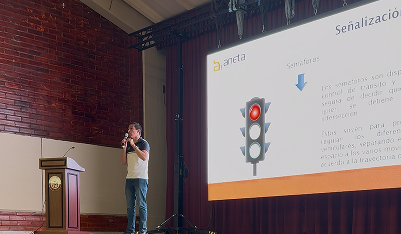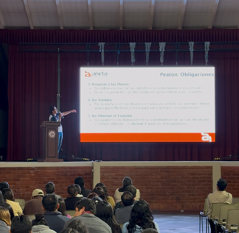 Durante el mes de agosto ANETA reforzó su compromiso con la seguridad vial a través de diversas activaciones y capacitaciones dirigidas a diferentes públicos, con el propósito de fomentar una movilidad más segura y responsable en nuestra comunidad.Charla a niños de Ecuajugos – Grupo Gloria Foods