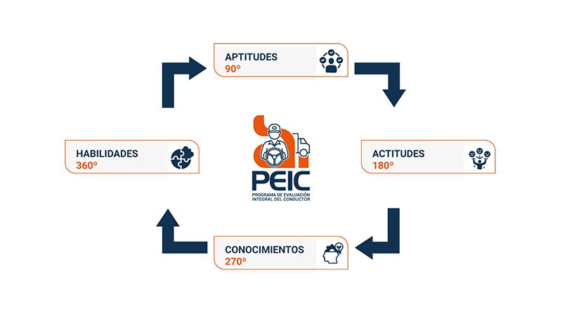 El PEIC es un modelo técnico, humano y preventivo para certificar a los conductores, evaluando cuatro pilares fundamentales: