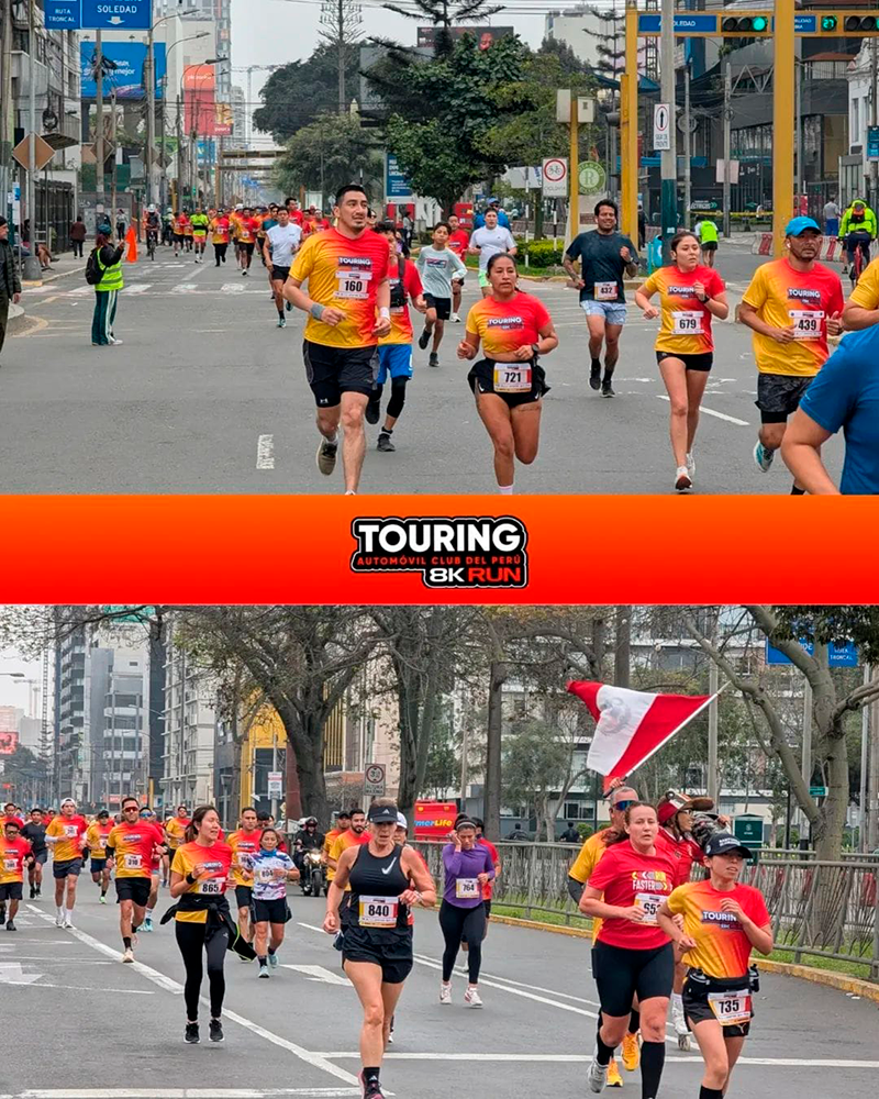 Con gran entusiasmo y la participación de más de 1,500 corredores, se llevó a cabo la primera edición de la Touring 8K Run, organizada por el Touring y Automóvil Club del Perú (TACP) con el respaldo de la Municipalidad de Lince. Realizada en el marco de la Semana de la Movilidad Sostenible, la carrera no solo fue una fiesta deportiva, sino también una plataforma para promover la movilidad sostenible y la seguridad vial, resaltando la importancia de calles ordenadas, seguras y responsables, donde peatones, ciclistas, deportistas y conductores puedan convivir en armonía.