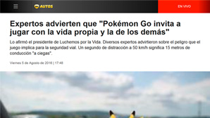 Finalmente, el estudio alerta sobre la popularidad en aumento de la aplicación Pokemón Go que acrecienta la problemática ya existente al generar una mayor utilización de dispositivos móviles en la pública.