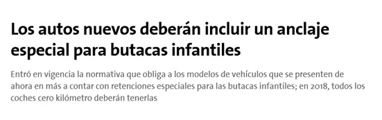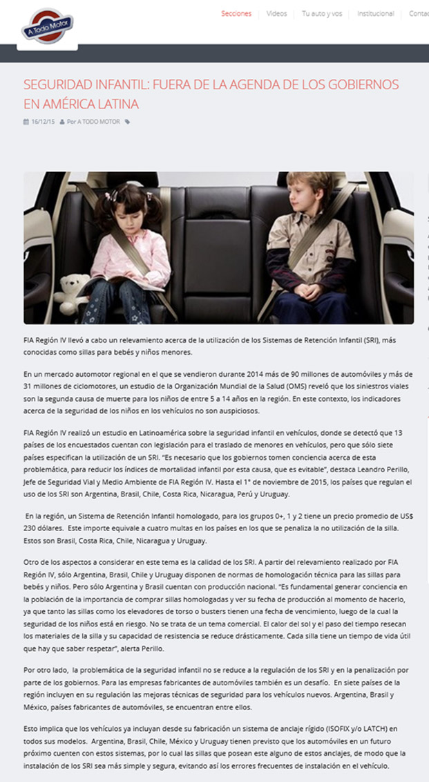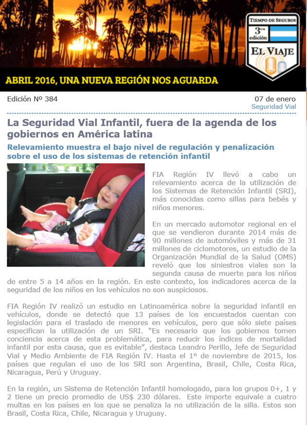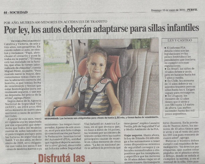 Un relevamiento de FIA Región IV muestra el bajo nivel de regulación y penalización sobre el uso de los sistemas de retención infantil.